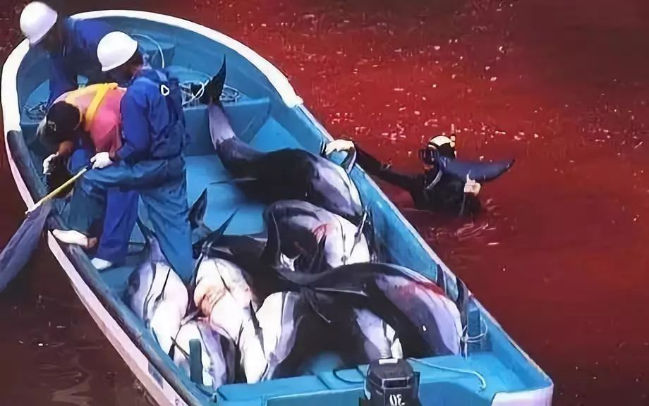 在日本,同样上演着海洋里的大屠杀,每年日本的海水都要被染红一次。