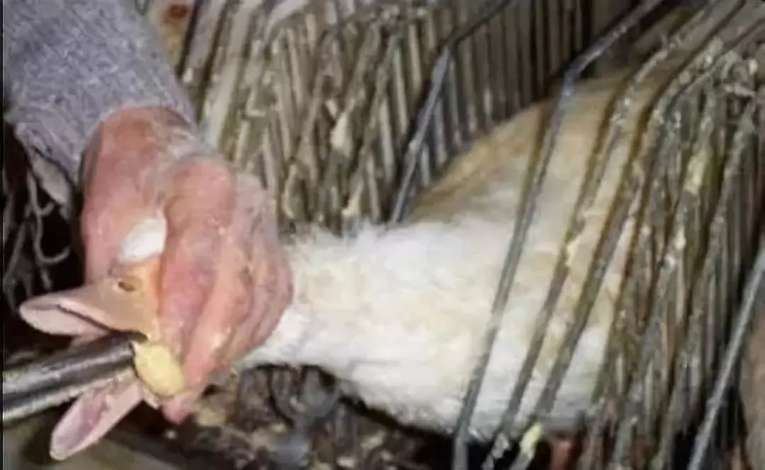 并且为了保证鹅肝细腻的口感,农场主尽可能地减少饲料中的钙质,身患“软骨病”的鹅,蹲在笼子里根本动弹不了,只能静静地看着体重呈几何倍数地增长。