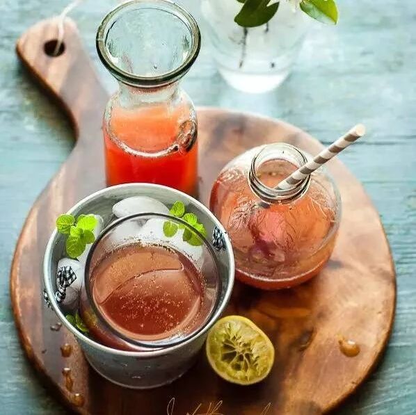 作法:蕃茄,柠檬洗净切小块,与枫糖浆一起放入果汁机中打汁即可。