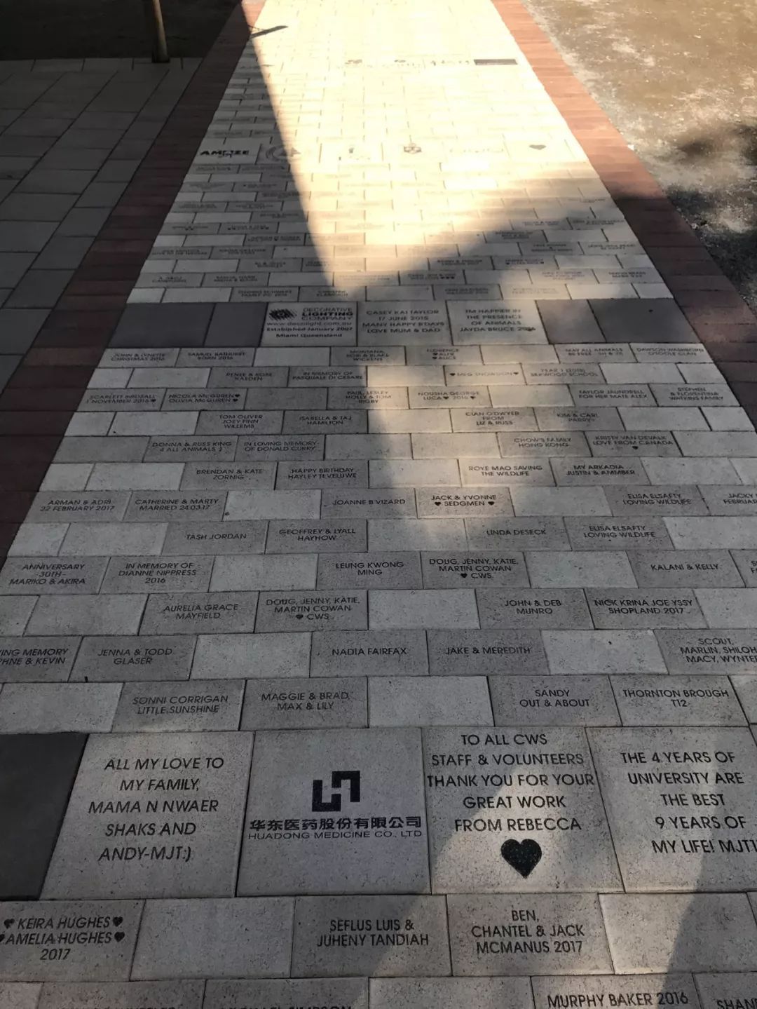 每一位捐助者的名字或信息都将被永久镌刻在通往动物医院的步道地砖上。