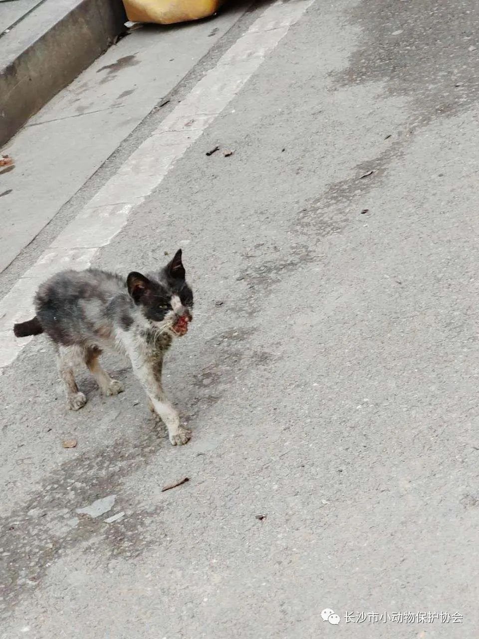 救援前:在2月23号下午,我们收到这样一条的求助,当管理员打开图片时候,触目惊心,一只极其瘦骨嶙峋的奶牛色小猫仿佛下一秒就要倒下,更加让人担心的是,它的嘴巴溃烂,血肉模糊????但是它还在垃圾堆坚强求生!!