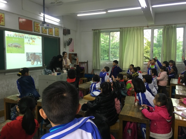 相聚在梅州的小学里开展动物保护的义教活动