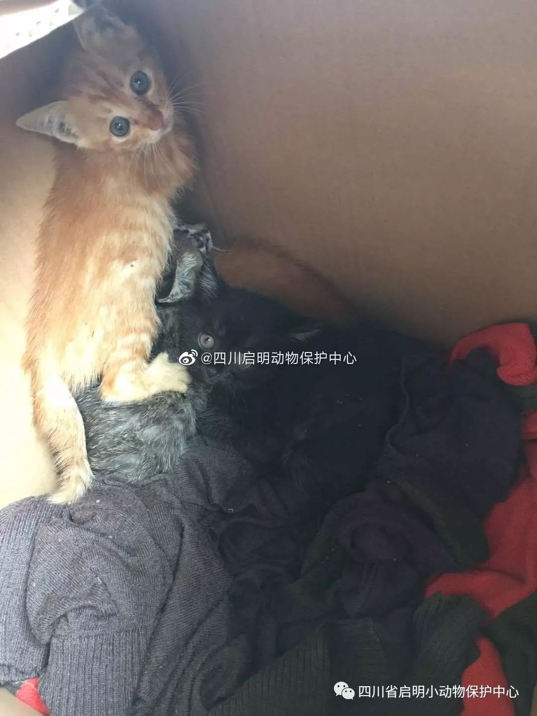 猜猜这盒子里是什么宝藏。当当当当~ 四只可爱乖巧无比可爱的小猫咪!幸好这些猫宝宝在还没有体验到生活的艰难前就被我们发现后捉住了。它们是在双流东升镇长冶路二段95号小区一长期无人居住的院子里生下的。其实一共有五个兄妹,有一只太害怕跑掉了,不过我们还会找的。听说它们的妈妈外出觅食喂宝宝的时候出车祸去世了。现在宝宝们不孤单了,基地有很多哥哥姐姐陪呢。