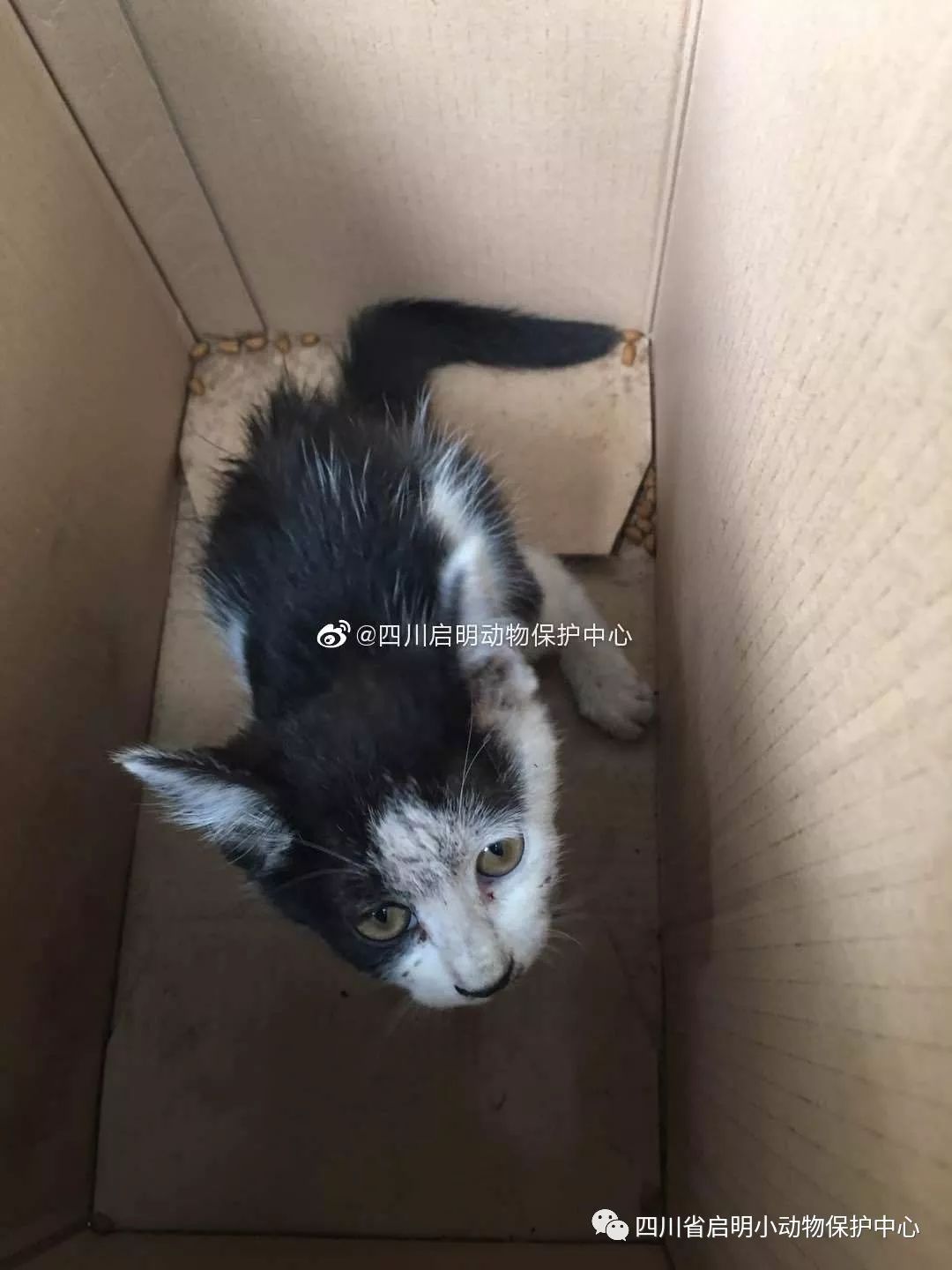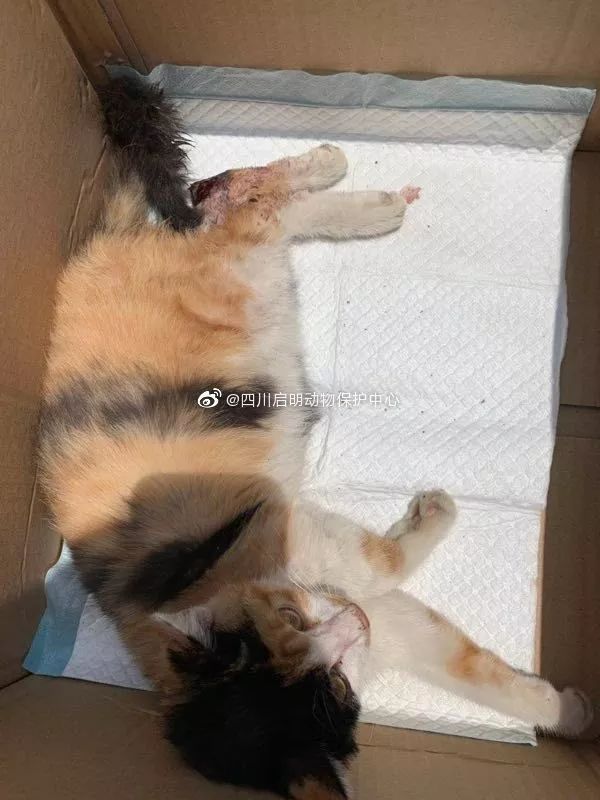 我们在金牛区曹家巷工人村一号发现了它,发现它时小猫的双腿有严重伤口,听附近居民说是由于偷东西被主人打断了腿与腰椎。事实究竟是否如此我们无从判断,在小猫身上已经造成的伤害也无法消失。在此我们呼吁大家,即使不爱,也请不要伤害!