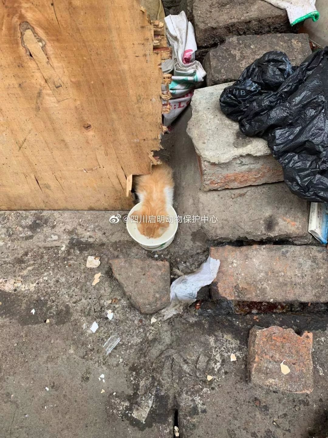 由于长时间食不果腹,日晒雨淋,小东西已经严重脱水、营养不良。不过以后你一定会长得圆溜溜,健健康康,会有家,有真正的猫爬架。