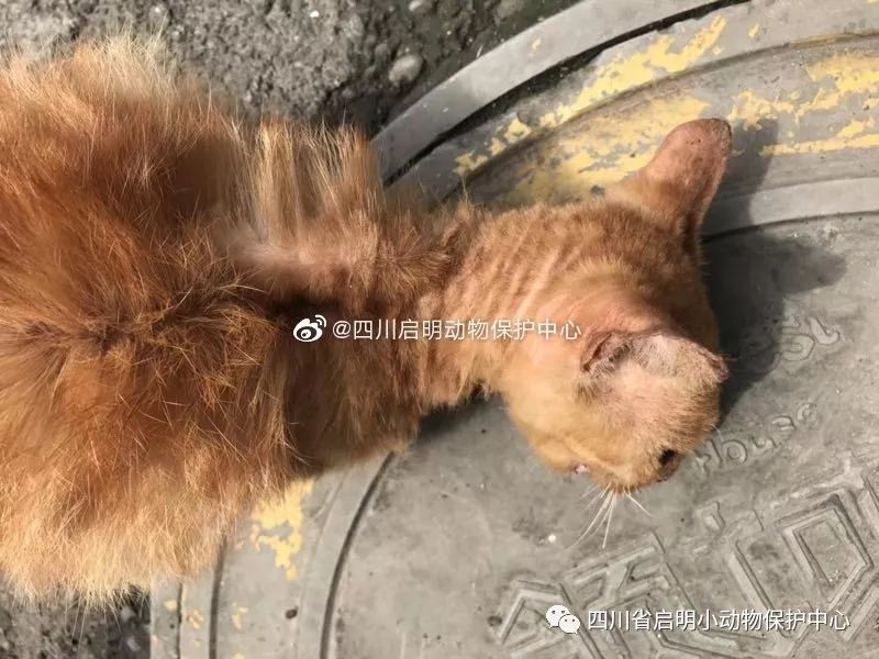 向来橘猫都是灵活的胖子,但是这只在金牛区蜀明西路4号院接到的大橘猫,因为后腿骨折,失去了往日的神气。只能蜷缩在路边呜咽,很可怜的样子。如果没人发现,以它无法站立和活动的现状来看,只能在饥饿和疼痛中绝望地等待死亡。