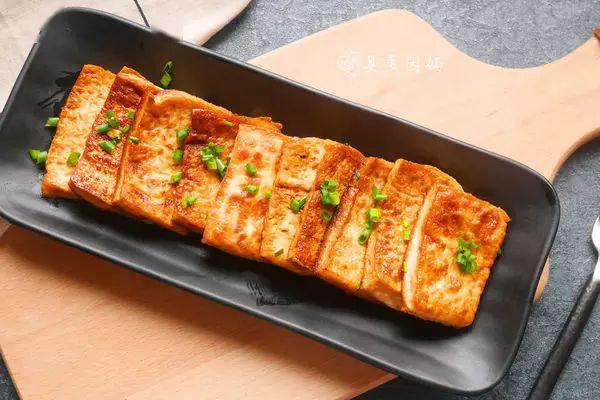 3、直至煎至豆腐两面微黄色,盛出备用。