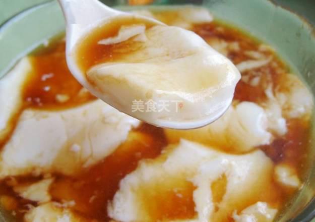 8、锅中倒入适量八角,花椒,姜,生抽,香油熬成汤汁,然后等豆腐脑凝固后浇在上面即可。
