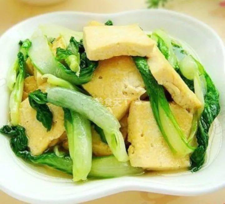 5、半分钟后放入煎好的豆腐,翻炒均匀,调味。