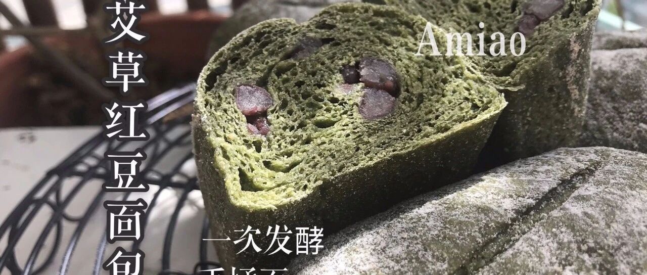 不爱糯米这种黏腻食物的,可以试试这款”艾草红豆面包“: