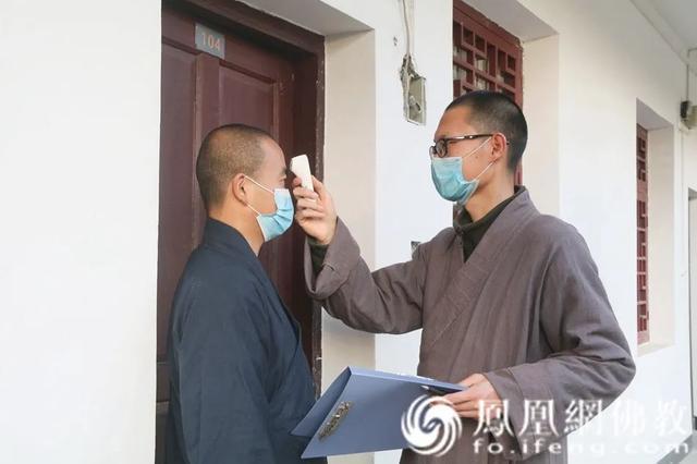 灵泉寺迅速启动了疫情期间的特别管理,成立了疫情防控指挥综合组。为降低人员聚集的传染风险,将集中住宿调整为分散居住,专门腾空了一栋楼作为内部隔离区备用。寺院还将全寺八十多人分为十个组,每组设立组长和副组长,负责落实各组每日两次的体温监测、房间消毒、汤药熬制、生活物资发放和心理疏导等工作,确保能关怀到寺院的每一个人。