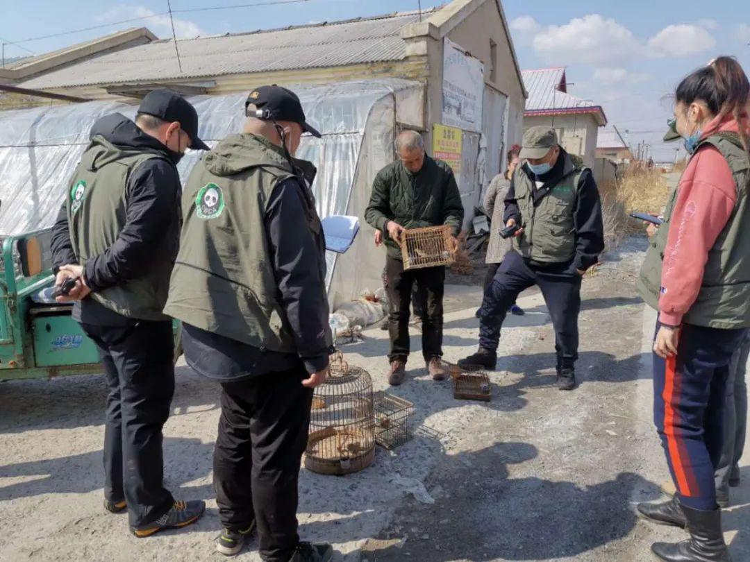 4月9日,黑龙江哈尔滨市双城区森林公安局、双城区林业和草原局与中国野生动物保护协会哈尔滨志愿者团队联合行动,以“回头看”为主题,开展“职能部门+民间团队”联动模式的野生鸟类护飞巡护活动, 成功放飞各类野生鸟189只,销毁鸟网7片、网杆15根以及拍笼、诱笼241个,无害化处理鸟类死体6只,并向村民发放保护鸟类宣传单50余份。
