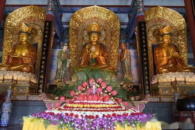 今年佛诞,因疫情防控需要,上海玉佛禅寺暂不对外开放,劝请十方善信以网上供灯、浴佛、供花等方式,忆念三宝深恩厚德,共同发广大菩提心,精进不懈,祈愿佛光加被,疫情早日息灭,众生安乐,国泰民安。此次佛诞,法师们还为浴佛的大雄宝殿内所有佛菩萨、护法诸天,以及太子像前都精心准备了佛前供花,以示庄严殊胜。