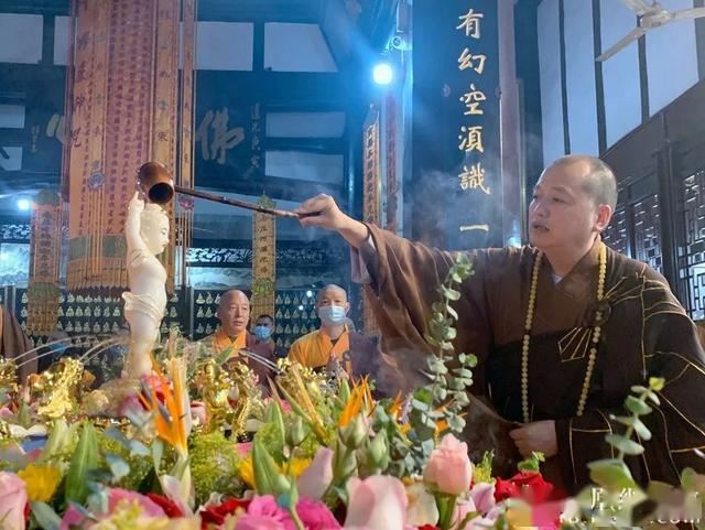 4月30日,农历四月初八,恭逢释迦牟尼佛圣诞,合肥开福禅寺为纪念本师释迦牟尼佛的诞生,也为祈愿众生都能开启智慧,远尘离垢,脱离苦海,由方丈圆藏大和尚代众浴佛祈福,借清净浴佛法水,洗涤身心尘垢,祛除众生无明热恼之火。祈愿世界和平,国泰民安,风调雨顺,更祈愿大众身心清净,阖家吉祥安康,事业顺心顺意。这是一个特殊的浴佛节,由于疫情影响,寺院暂不对外开放,也请广大信众理解,安心在家礼佛。