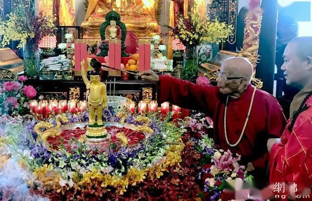 2020农历四月初八佛诞日,安徽合肥明教寺响应中佛协号召继续暂停开放寺院,以符合疫情防控要求的形式庆祝佛诞,提前告知、引导信众居家礼佛诵经、沐浴佛恩。浴佛现场清净简洁,由界山法师陪同104岁方丈妙安长老代众祈福,祈愿疫情早日止息,世界和平、国泰民安!