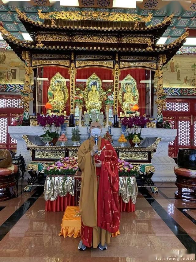 因为疫情的关系,香港有“限聚令”,人数不能超过4人,香港西方寺用网络直播的方式,和大家一起来分享浴佛。宽运法师在佛诞开示中表示:通过这个仪式,反省人生,洗涤净化心灵,希望这个世界早日得到净化,疫苗早日出现,也希望藉着这个机会,祝愿大家佛诞吉祥,身体健康,事事如意!