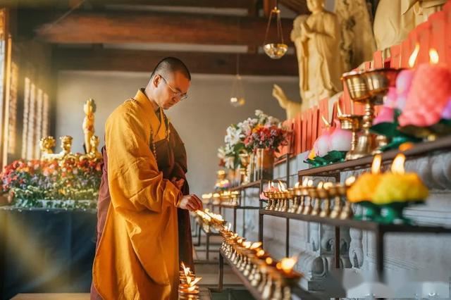 疫情防控期间,华严宗祖庭西安华严寺按照国家各部门疫情防控规定,积极响应中国佛教协会号召,过一个“特殊庄重”的佛诞“浴佛节”!西安华严寺在华严三圣殿为太子佛身敬设香汤浴盆,住寺僧众各自前往殿堂礼拜浴佛,过程简短,虔诚庄重;在华严三圣殿、药师殿、弥陀殿、祖师塔、华严讲堂,分别由住持宽昌法师及执事一人为社会各界及寺院信众点灯祈福;住寺僧众为抗疫英烈、受难众生、疫情消退回向,以祈:国泰民安、疫情早除、世界和平;西安华严寺也引导信众在家诵经礼佛,并为他们在现场录制视频同沾法喜,共沐佛恩。