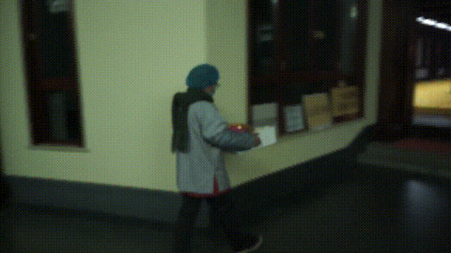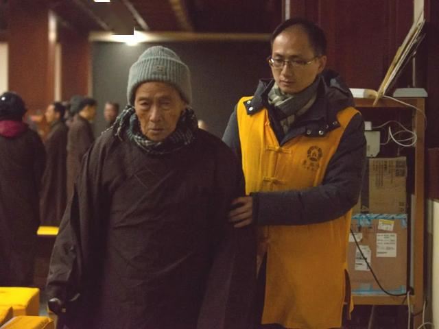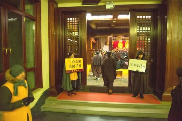 即使只是负责开门也不是轻巧活儿:秋冬季,念佛堂门口就像一个张着大口的“冰箱”,寒风凛冽;两位负责守着侧门的义工,就在来回开门间经受无数次冷风的洗礼。佛七期间一天最多时能开关侧门上千次,他们就这样坚持着,从来没提出过换岗。