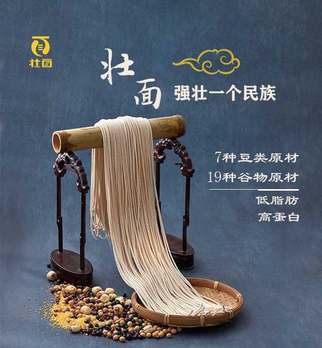 谢先生及其研发团队根据《黄帝内经》五谷为养的理论:五谷杂粮是人类最佳的营养品,也是植物系统中能量最多的部分。于是以五谷杂粮为食材,参考民间饮食习俗,测试了不同的产品形态、食材组合、工艺流程,历经三年,最终根据人体每天营养需求,确定了26种食材组合,做成了现在的壮面!吃一碗就能解决一天基础营养!