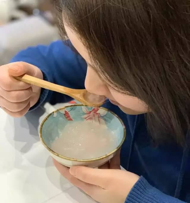 与机器制作的藕粉不同,西湖藕粉泡开后,晶莹透明,随着搅拌,粉状会逐渐变得 粉嫩、软糯,那是纯藕粉本来的样子哦!