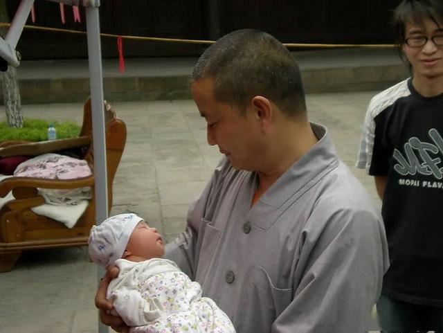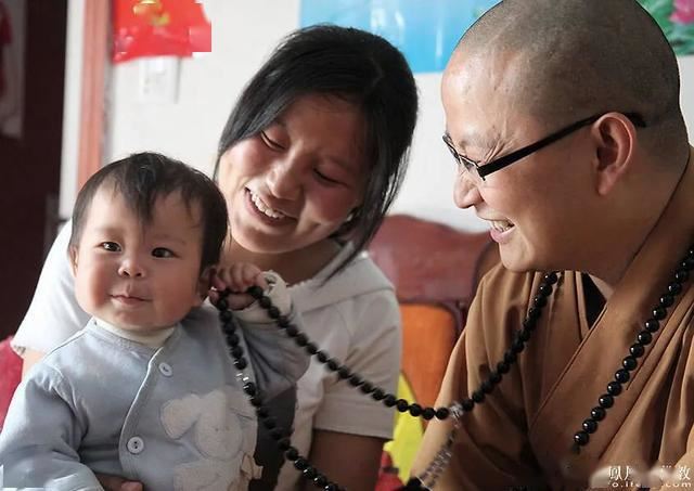2009年5月12日,素全法师看望第一个罗汉娃唐震文,祝贺小震文一周岁生日。