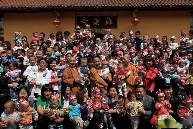 2010年5月12日,108罗汉娃在什邡罗汉寺过2周岁生日。