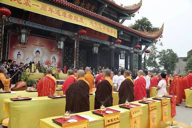 2009年5月12日,什邡罗汉寺举行地震一周年遇难者超度、为灾区祈福法会。