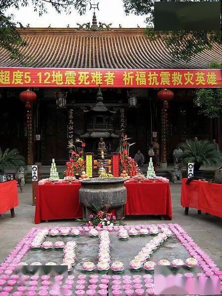2008年5月19日,是全国哀悼日第一天,上午10点,什邡罗汉寺在大雄宝殿前的空地上举行了隆重的超度法会。