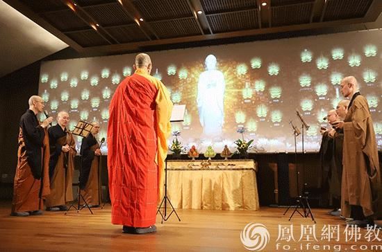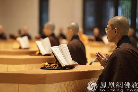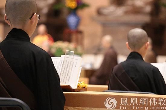法鼓山方丈果晖法师带领僧团系念弥陀圣号(图片来源:凤凰网佛教 摄影:法鼓山)