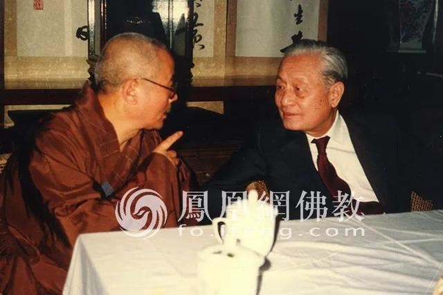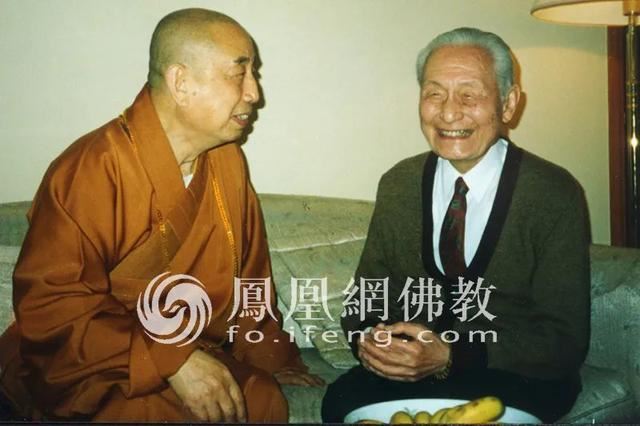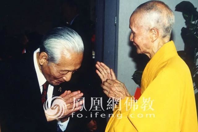 图为1991年4月,赵朴初居士与台湾圣严法师。