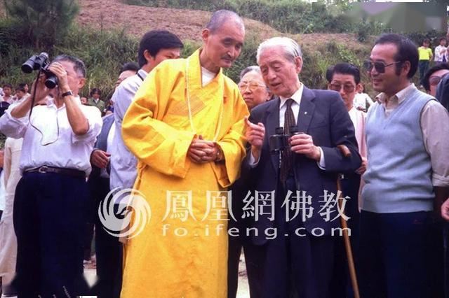 图为1993年,赵朴初居士与时任香港佛教联合会会长觉光法师在香港。