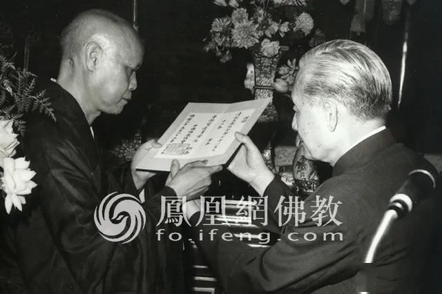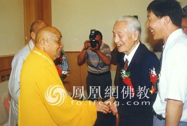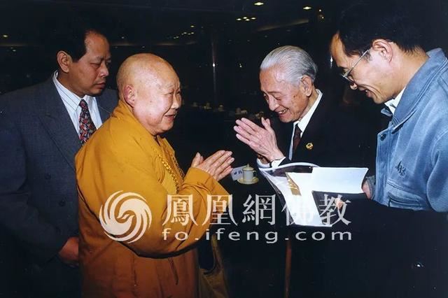 图为1994年9月,赵朴初居士在北京广济寺接见台湾印顺法师。