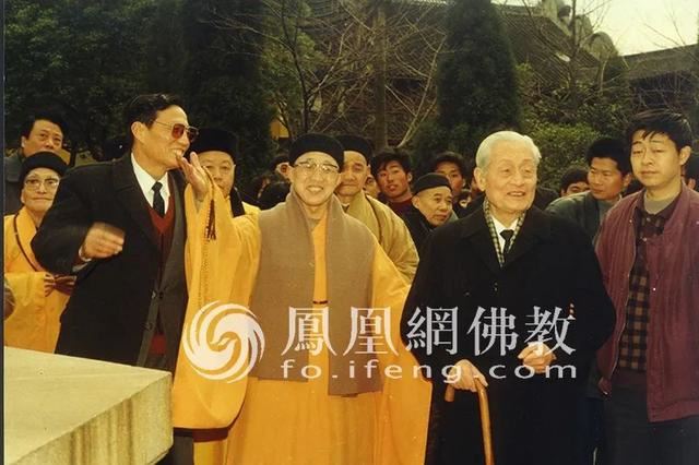 图为1993年,赵朴初居士与松纯法师在常州天宁寺。