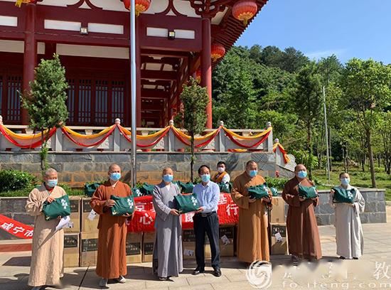 咸宁市民宗委副主任杨祥富向教职人员赠送健康包(图片来源:凤凰网佛教 摄影:宗贤法师)