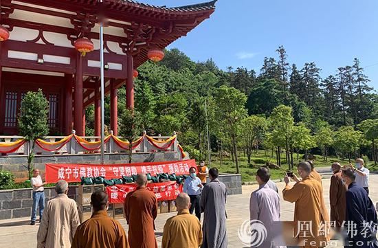 2020年5月19日,咸宁市佛教协会在咸宁潜山寺举行第六次“守望相助 携手抗疫”互助活动。咸宁市民宗委副主任杨祥富、咸宁市佛教协会会长妙量法师出席活动并讲话,咸宁市佛教协会班子成员、各县市区佛教协会受赠代表共20余人参加了本次活动。