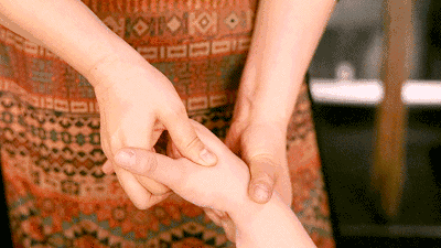 用大拇指与食指,抓住另一手手指头上长出指甲的地方两侧,然后开始揉搓,一处约揉搓10秒钟。