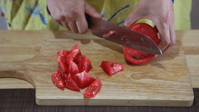 3、西红柿切块,生姜切细丝,食材准备就绪 。