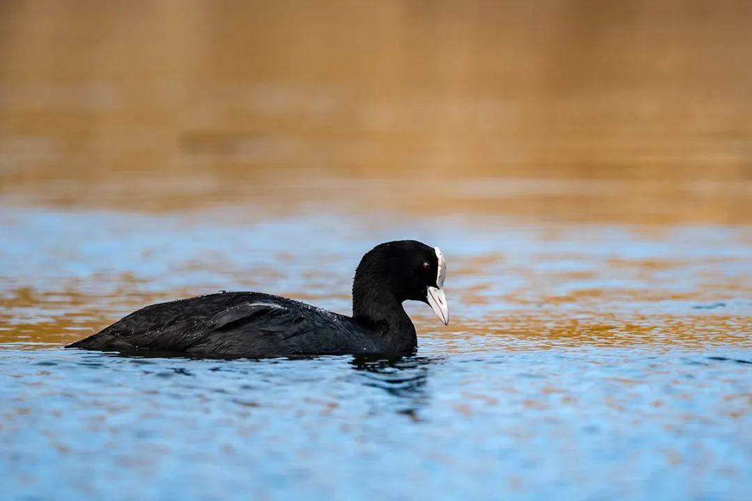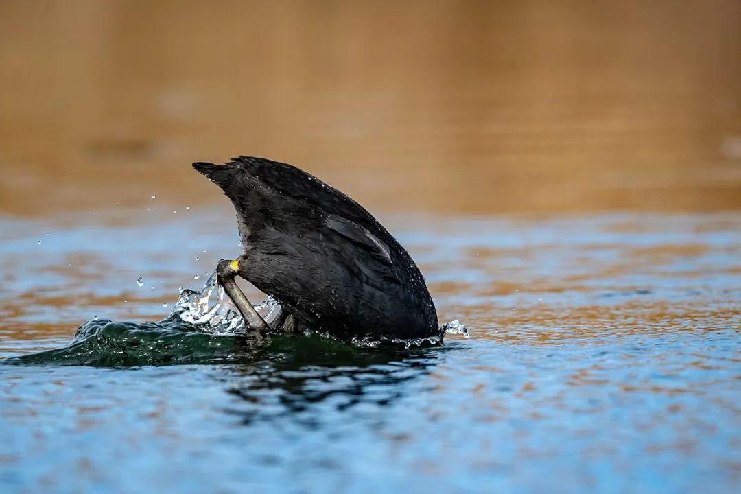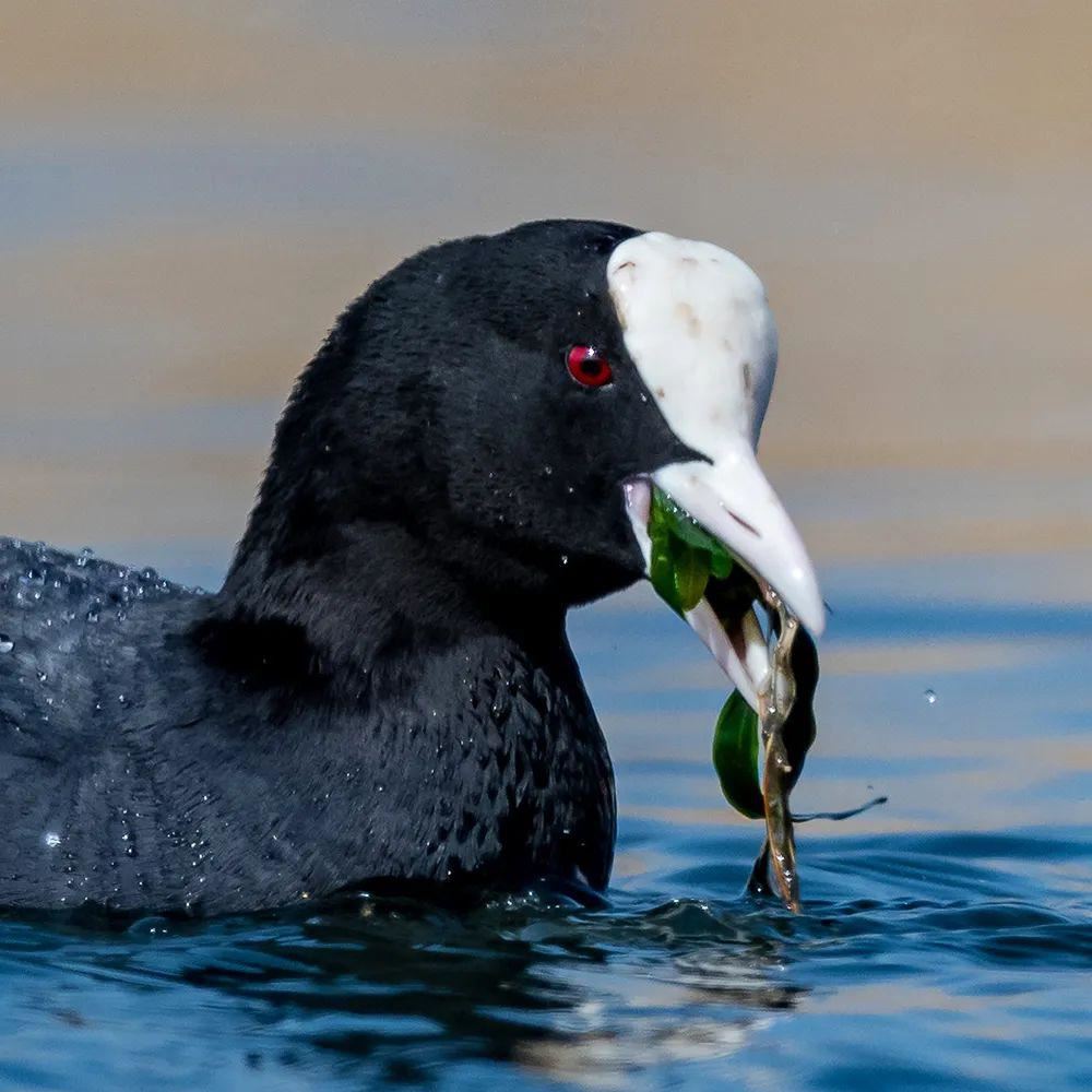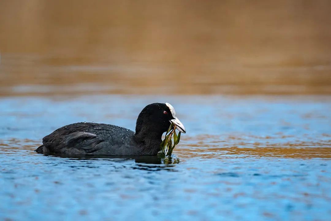 骨顶鸡还是很有心计的,比如觅食的地方水较深,它们就会跟随体型大的觅食鸟,投机取巧省去反复潜水觅食。