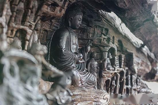 “中华上下五千年”巨型雕刻局部:龙门石窟(图片来源:凤凰网佛教 桐柏山木雕博物馆提供)