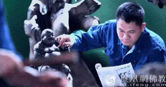 匠心专注的雕刻师(图片来源:凤凰网佛教 桐柏山木雕博物馆提供)