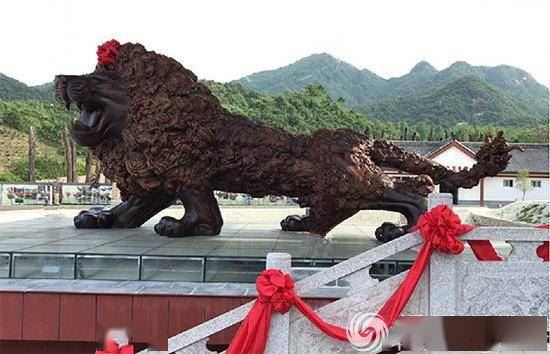博物馆广场的雄狮(图片来源:凤凰网佛教 桐柏山木雕博物馆提供)