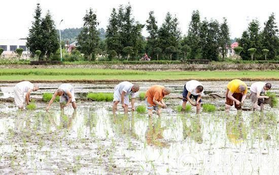 2020年6月26日,刚过完我国的传统节日“端午节”,为了不误农时,湖南省佛教协会会长圣辉大和尚率长沙麓山寺方丈永兴法师,湖南佛学院教务长演法法师,湖南省佛教协会办公室副主任永生法师,长沙九溪古寺住持通振法师及湖南佛学院学僧前往长沙县金井镇九溪古寺农禅园、下稻田插秧,让大家通过农忙的劳动,践行佛教中国化特色,以身体力行体悟祖师宗风,不忘佛教优良传统,体验百丈怀海禅师提倡的“一日不做,一日不食”农禅并重的丛林宗风。(凤凰网佛教通讯员通振法师)