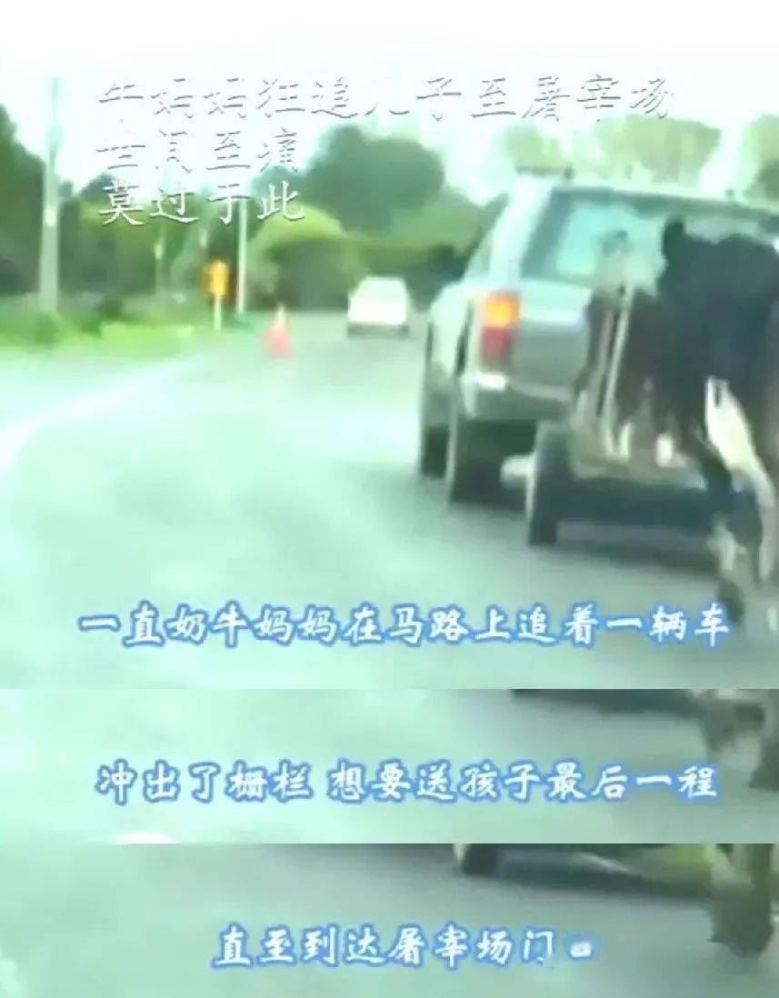 而有的牛妈妈会奋力冲出去,疯狂追赶前面的屠宰车,直到再也追不动……