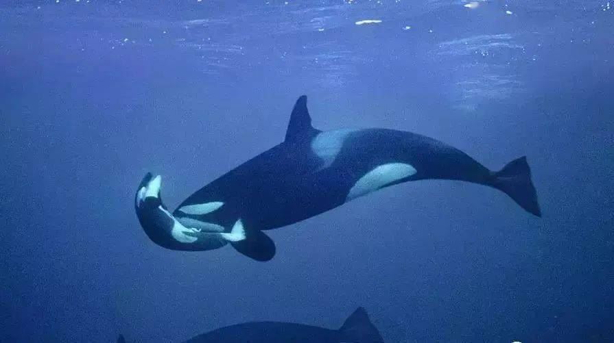 也许虎鲸妈妈想对宝宝说:“你没看过的海,妈妈都带你游过了!”