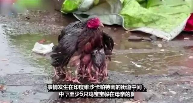 印度一只“落汤鸡”妈妈在风雨中展开双翅, 傻傻地一动不动,把 母爱化作一把大伞,保护着年幼的孩子尽可能不被雨水淋湿。