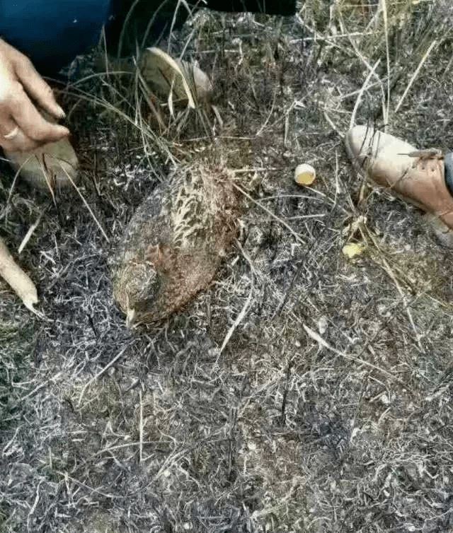 2017年的某地清明节祭拜引发了一场山火烧,一只野鸡深受其害。