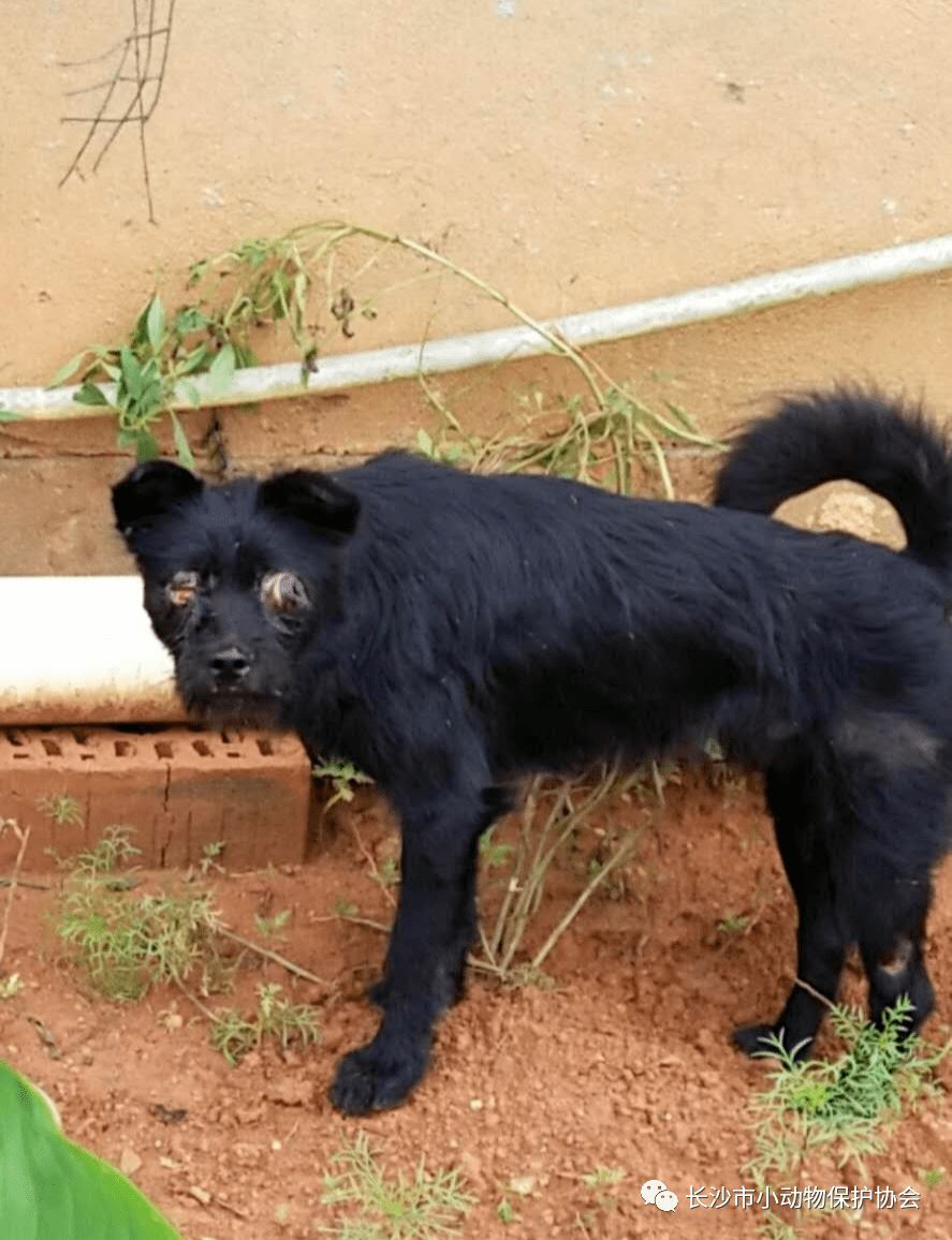 从照片中看出,狗狗的双目红肿流脓,眼球受损严重