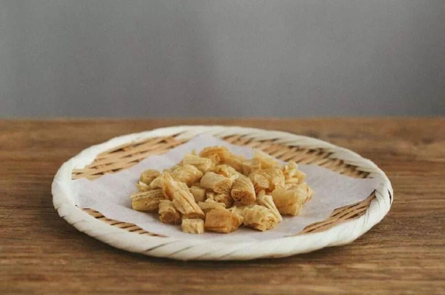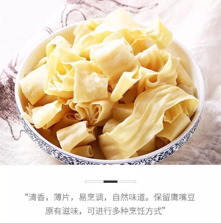 因为泡发需求的时间很短,口感比腐竹更加劲道,豆香味保留更足。