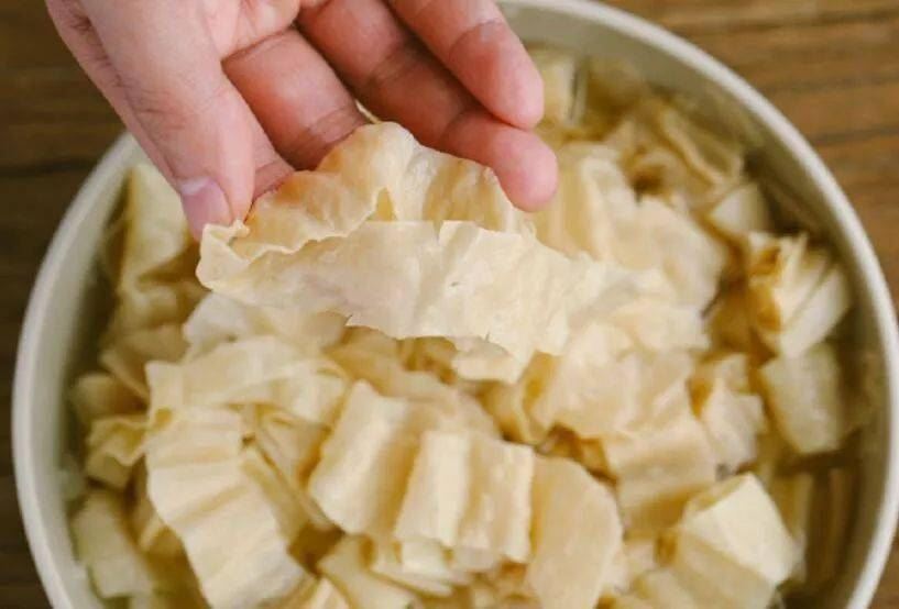 我们都知道,常规工艺下烘干切割的腐竹需要充足时间的浸泡才可以食用。