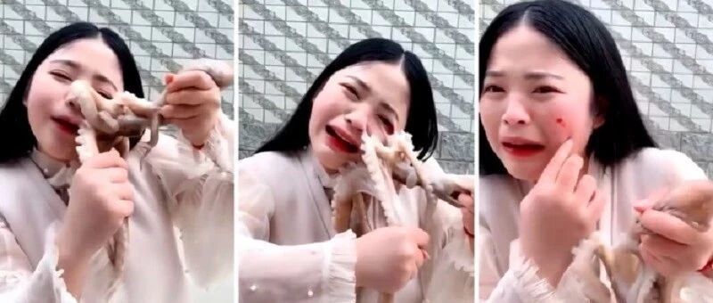 近日,快手上一名女主播为博眼球,不惜铤而走险直播活吃章鱼,不料却反遭章鱼吸脸破相,引发了全球网友的热议,不少网友在看完之后直呼“自作自受”、“想火想疯了”!